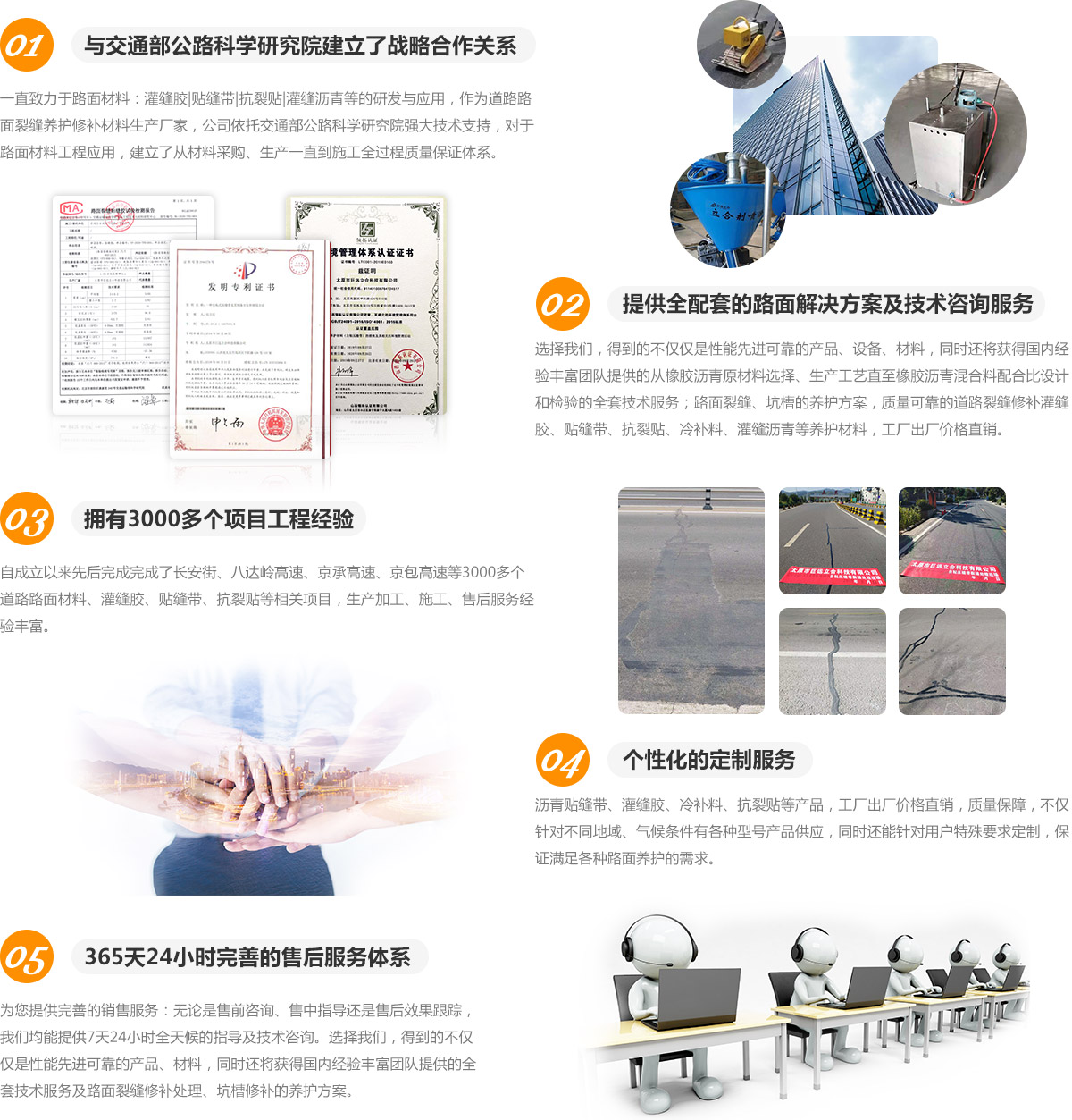 巨遠立合技術(shù)(北京)有限公司成立于2009年,是一家集新材料研發(fā)、生產(chǎn)、推廣于一體的現(xiàn)代高新技術(shù)企業(yè)。多年來,巨遠立合一直專注于道路預(yù)防性養(yǎng)護領(lǐng)域,持續(xù)加大研發(fā)投入,擁有了多項自主知識產(chǎn)權(quán)的專利技術(shù)和著作權(quán),其中取得國家發(fā)明專利的“L-ZN自粘壓縫帶”在2011年由科技部評為“國內(nèi)技術(shù)領(lǐng)先”的科技成果。目前該產(chǎn)品已廣泛應(yīng)用于全國16個省的高速公路、國道、省道及縣鄉(xiāng)道路。巨遠立合也成為自粘壓縫帶產(chǎn)品開發(fā)最早、生產(chǎn)規(guī)模和銷售規(guī)模最大的企業(yè)。